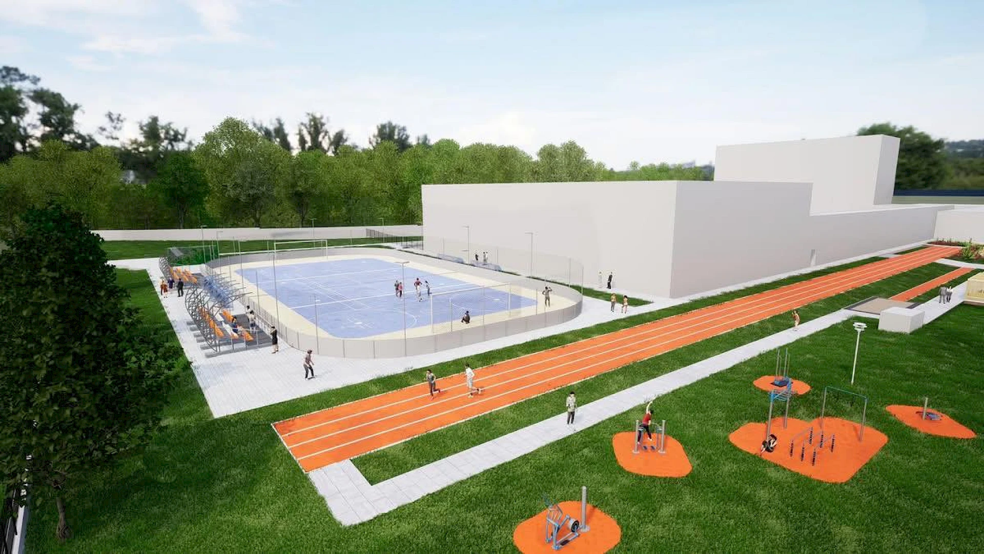 Rekonštrukciou prejde aj zadný vstup do telocvične vrátane vstupného foyer, sociálnych zariadení a posilňovne. Zmodernizuje sa aj vonkajšie osvetlenie areálu školy a dokončí sa obnova športových plôch. V exteriéri vzniknú oddychové zóny, prebehnú tiež sadové úpravy a zrekonštruuje sa oplotenie.