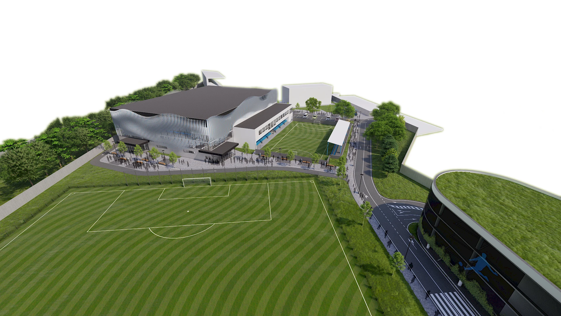 Dominantný prvok v novom architektonickom ráze budovy budú tvoriť horizontálne hliníkové lamely, ktoré interpretujú dynamický pohyb rieky Váh. Tvar lamiel zároveň reflektuje na orientáciu športovej haly k svetovým stranám tak, aby nedochádzalo k prehrievaniu vnútorných priestorov, ale zároveň nezabraňovali vnikaniu svetla do haly.