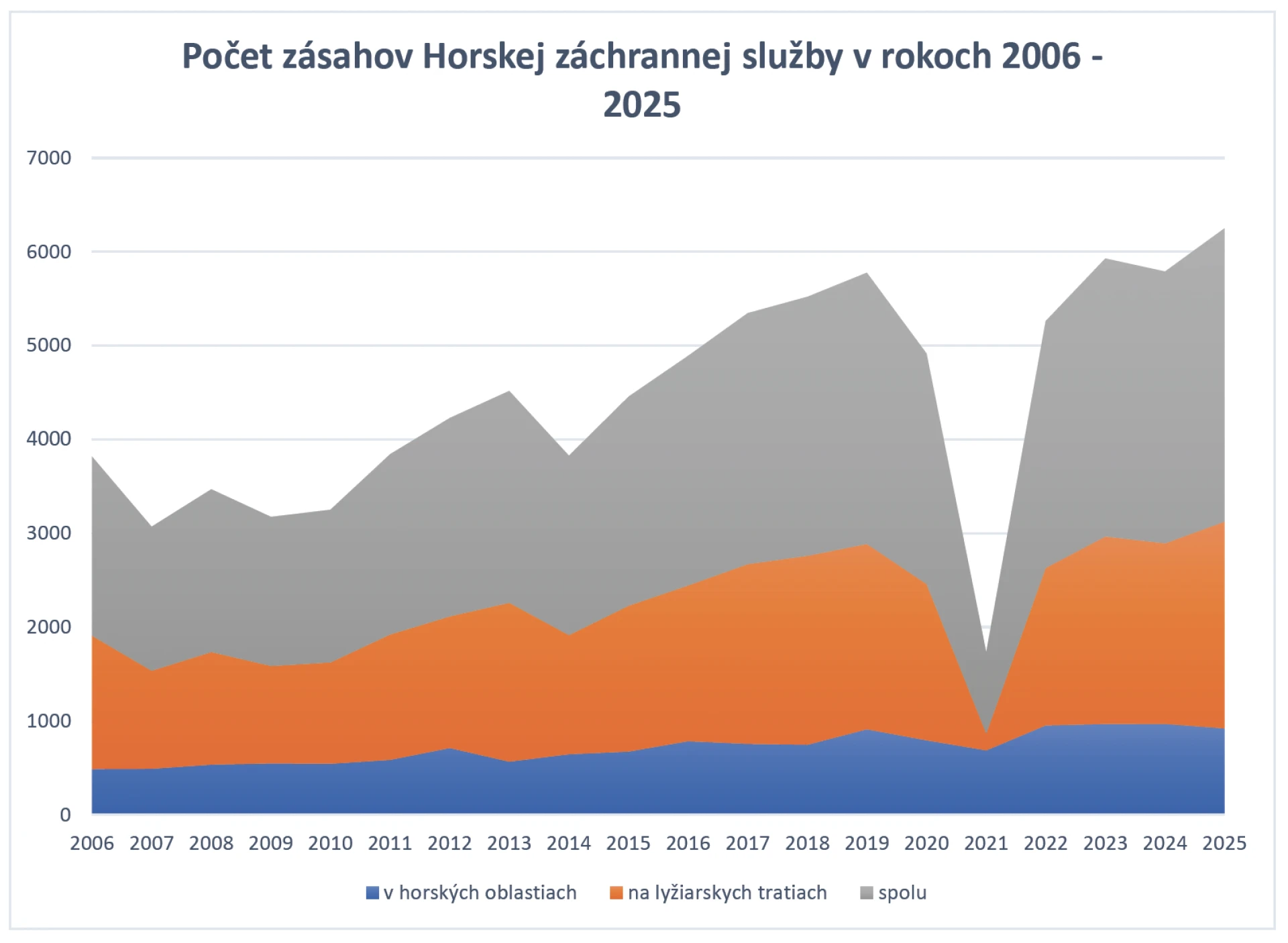 V roku 2025 zasahovali horskí záchranári na Slovensku 3125-krát, čo je oproti roku 2024 nárast o 231 zásahov (takmer o 8%), teda 231 ľudských príbehov či osudov.