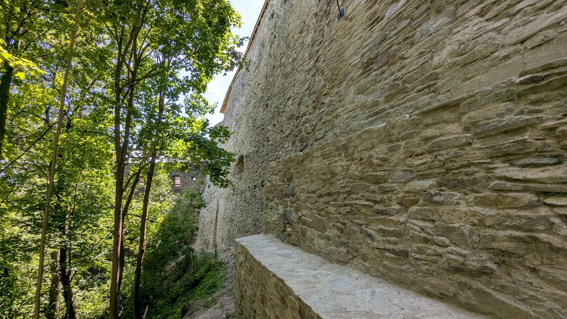 Severovýchodná hradba s výškou opevnenia 12 metrov a dĺžkou 50 metrov bola kedysi dôležitou obrannou líniou hradu v ťažko dostupnom teréne. Práve táto poloha sťažovala stavebné práce. Všetky tony kameňa, ktoré boli pri rekonštrukcii použité, totiž museli robotníci prenášať ručne.