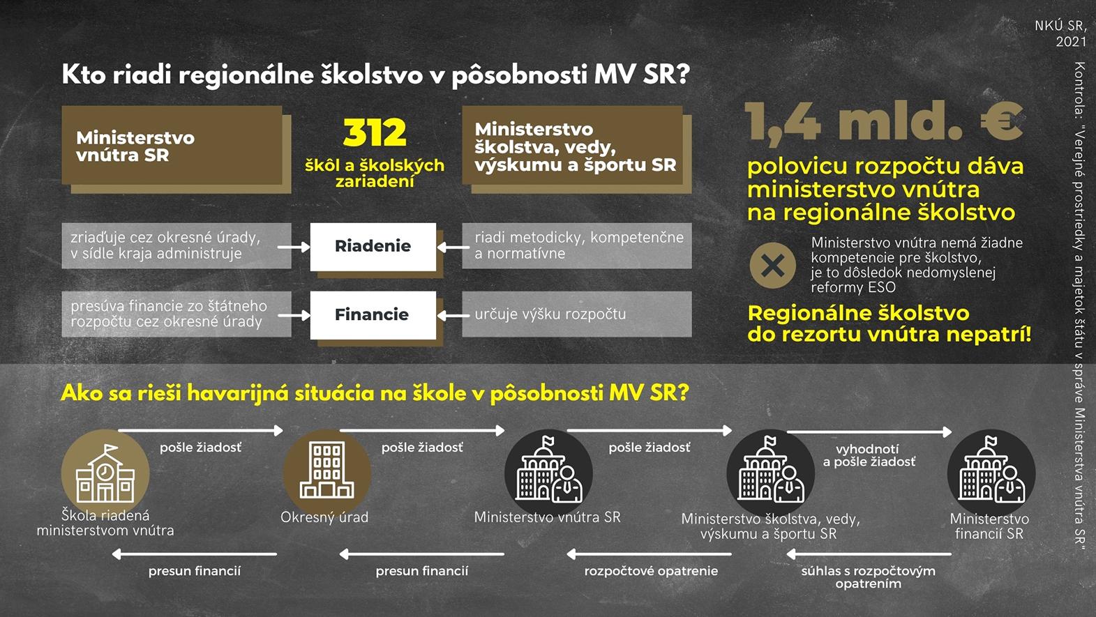 Kompetenčná roztrieštenosť sa prejavovala pri nastavovaní rozpočtových pravidiel, ale i pri riešení havarijných situácií či prepojení škôl s regionálnymi samosprávnymi inštitúciami. „Je správne, že minister vnútra našiel spoločnú reč so šéfom rezortu školstva a dohodli sa na zmene zákona. Všetky vzdelávacie inštitúcie sa tak dostanú pod jednu strechu. Finančne, metodicky i odborne budú pod dohľadom rezortu školstva. Týmto krokom sa konečne darí odstrániť nesystémový prvok zavedení do vzdelávacieho systému reformou ESO,“ približuje Ľubomír Andrassy podpredseda NKÚ.