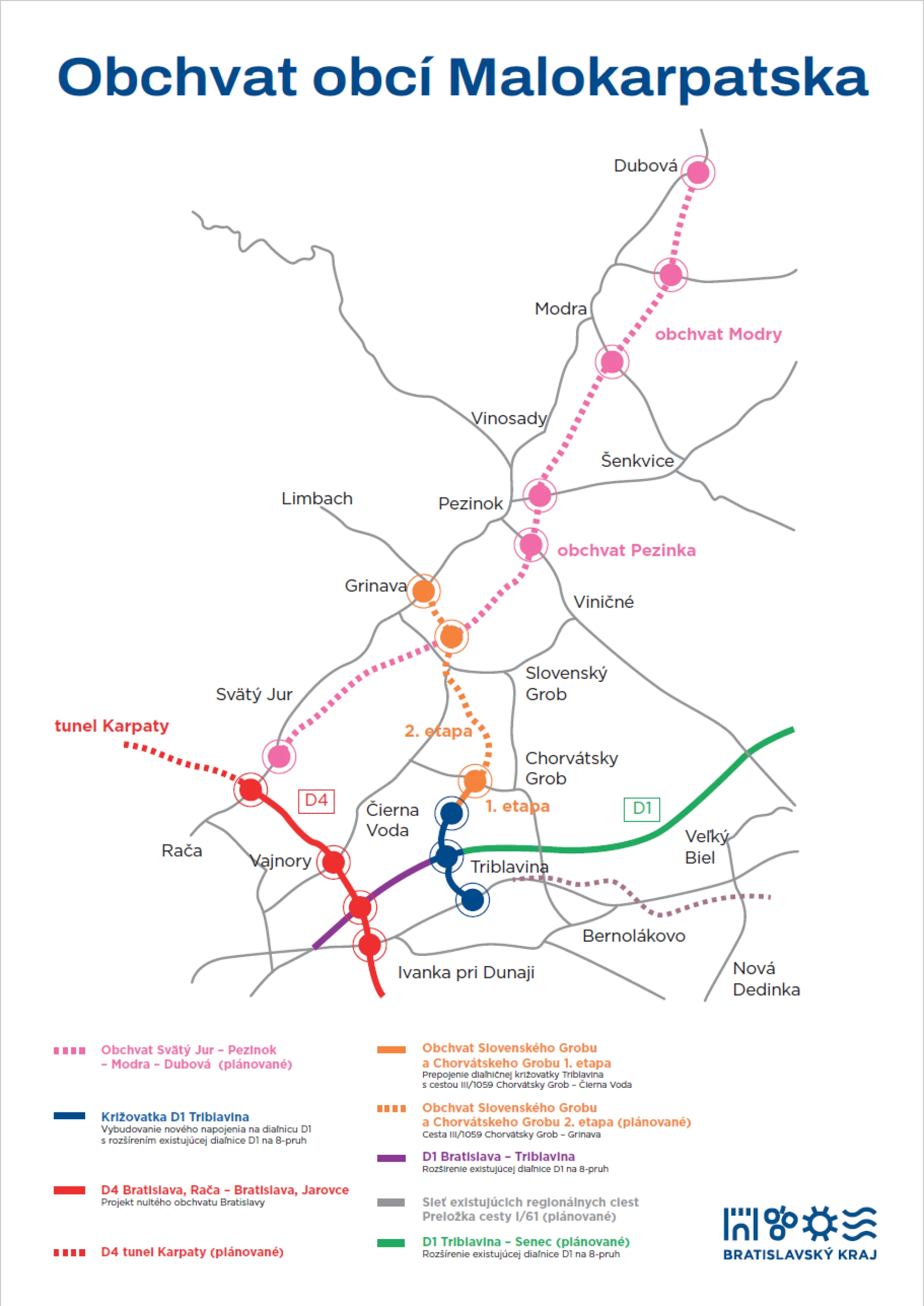Projekt obchvatu Modry je súčasťou širšieho zámeru Malokarpatského obchvatu, ktorý má postupne odbremeniť Svätý Jur, Pezinok, Modru, Dubovú, ale aj Chorvátsky Grob a Slovenský Grob od tranzitnej dopravy. Ide o systémové riešenie dlhodobých dopravných problémov celého regiónu, nie o izolovaný zásah.