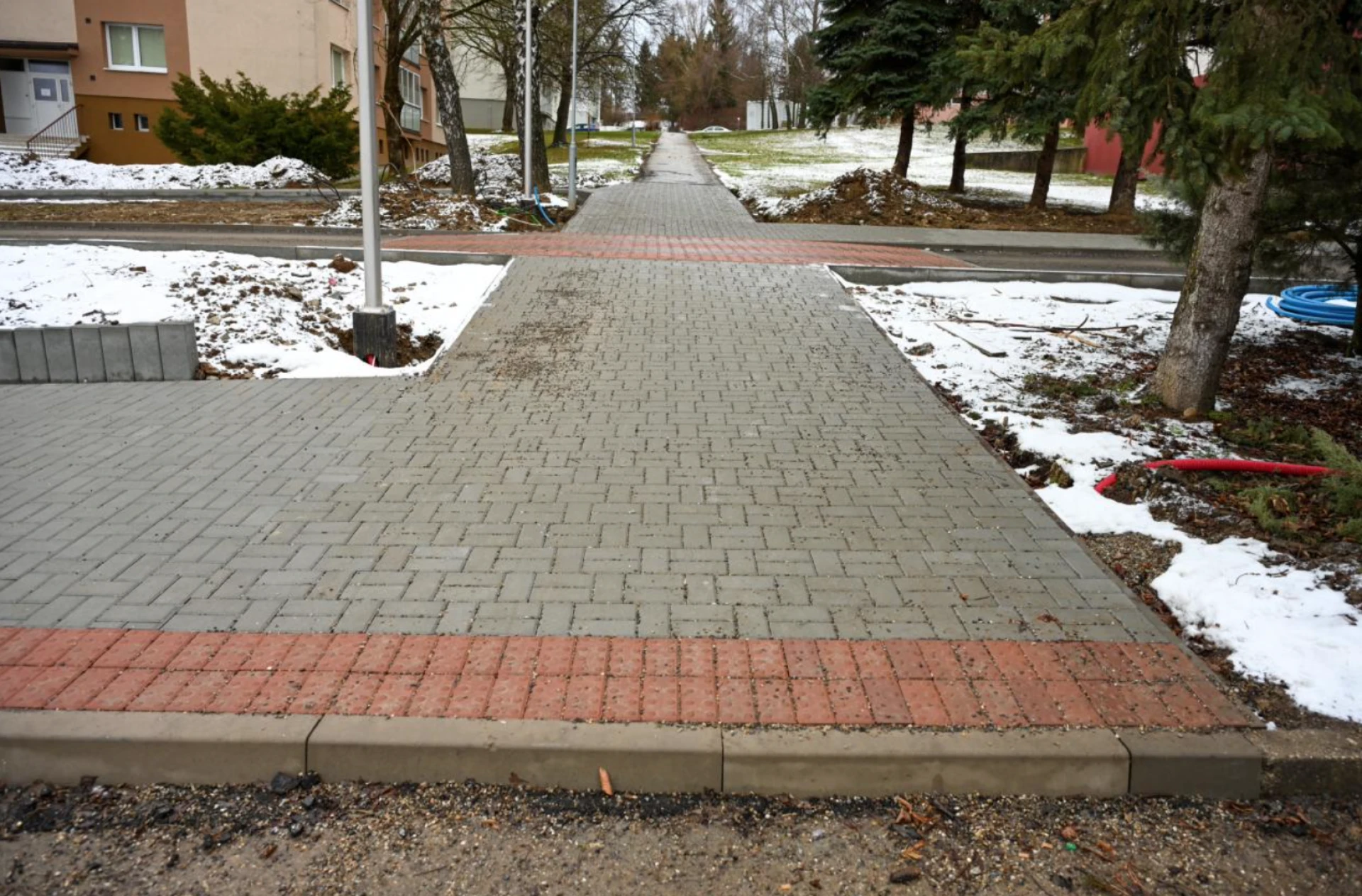 Nový chodník, ktorý pribudol v posledných týždňoch, tak lemujú aj nové stĺpy verejného osvetlenia, a to s cieľom zvýšenia bezpečnosti peších, ktorí sa viac nemusia pohybovať po komunikácii určenej pre motorové vozidlá. Novovybudované parkovacie miesta sú opäť vytvorené z vodopriepustnej dlažby, čo je jedným z ďalších vodozádržných opatrení. „Takýmto spôsobom dokážeme zrážkovú vodu udržať v území, v ktorom spadne, a pomáhať tak zvyšovať hladinu podzemnej vody, čo je v súlade s celomestským environmentálnym projektom Zelenšia Dubnica,“ doplnil primátor.
