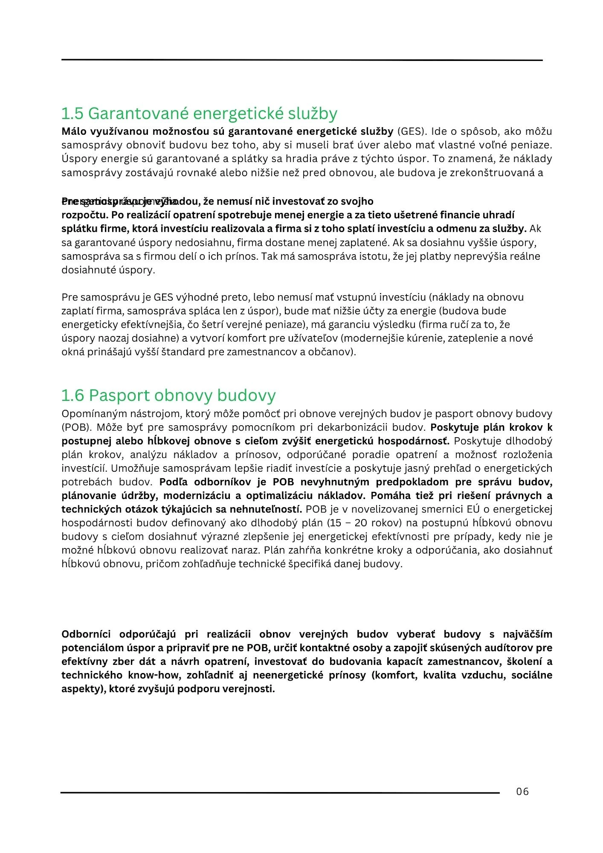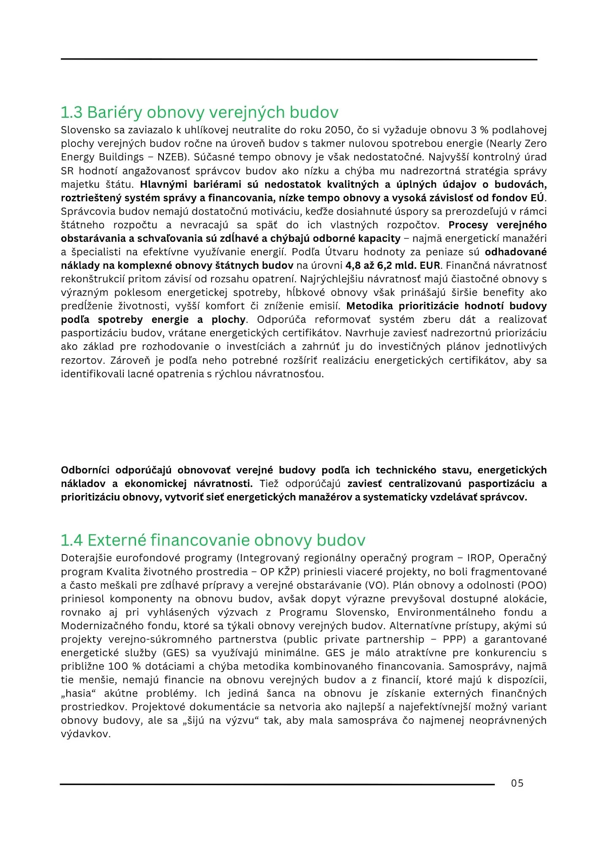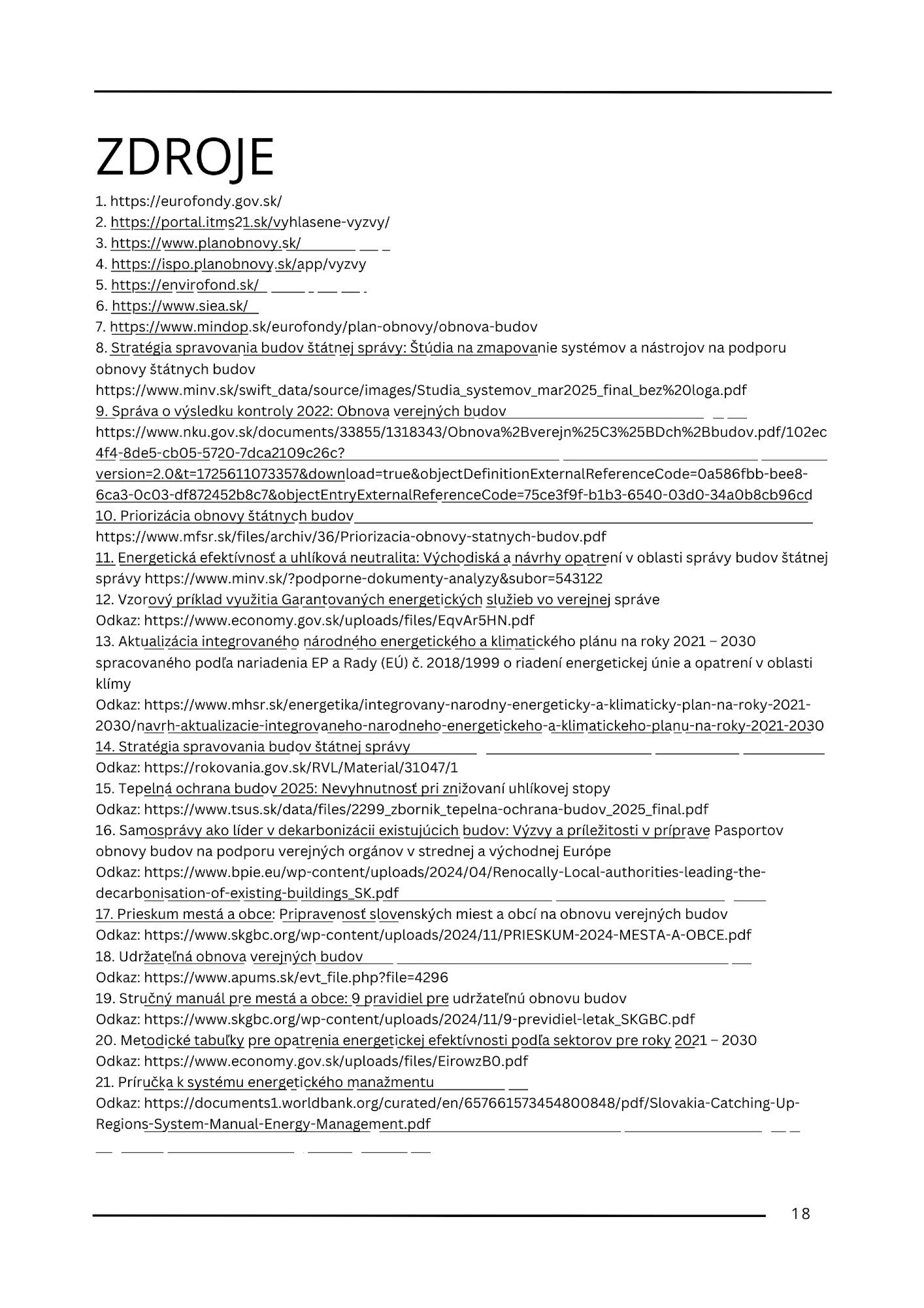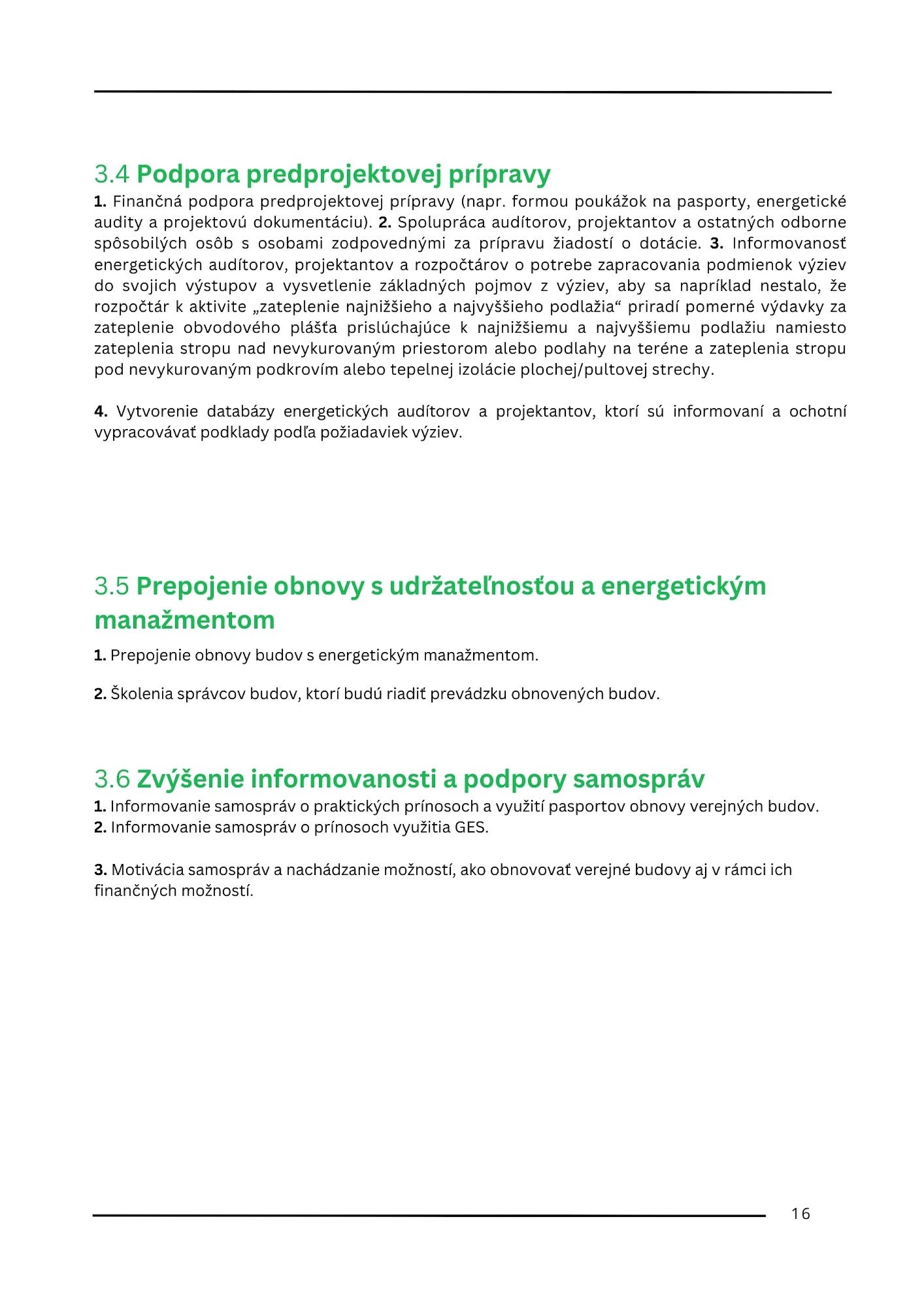 - Prepojenie obnovy s udržateľnosťou a energetickým manažmentom