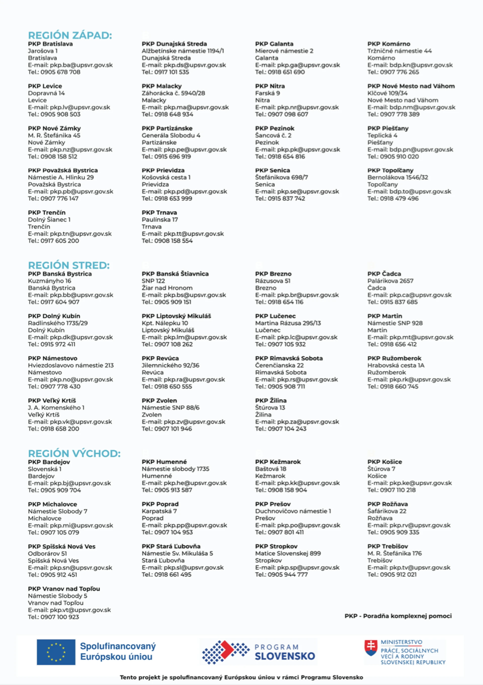 V Poradniach komplexnej pomoci sú pre vás k dispozícii: