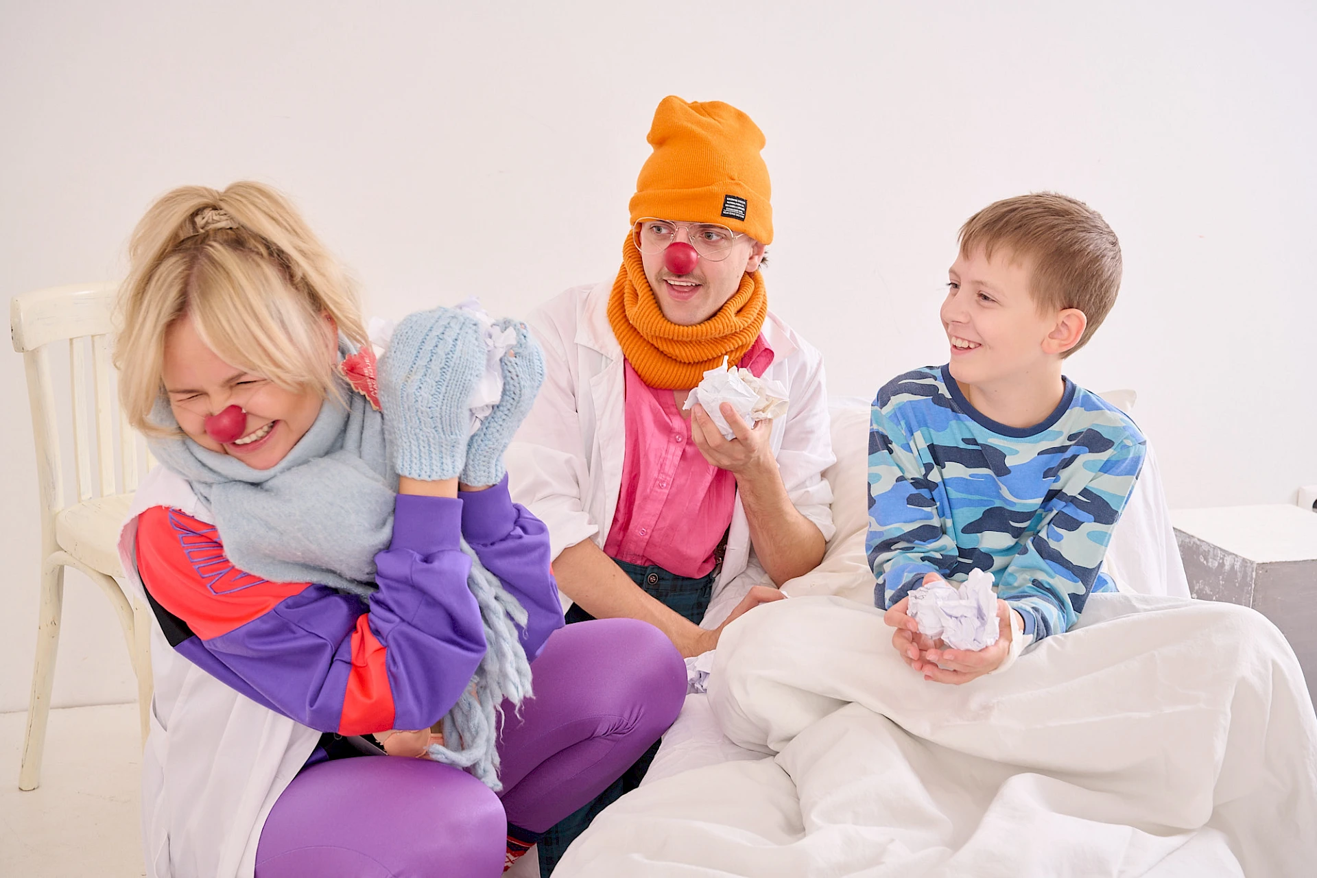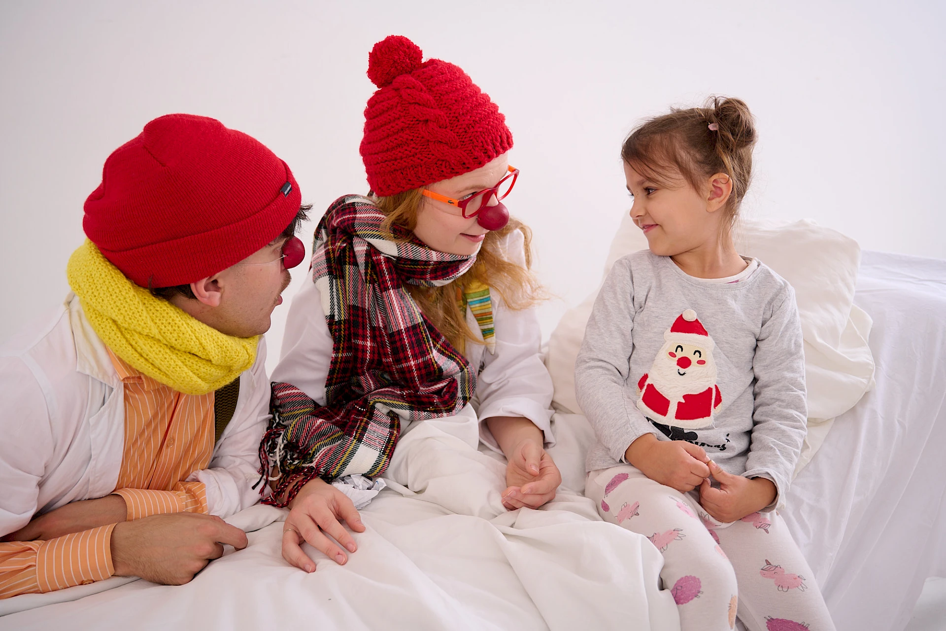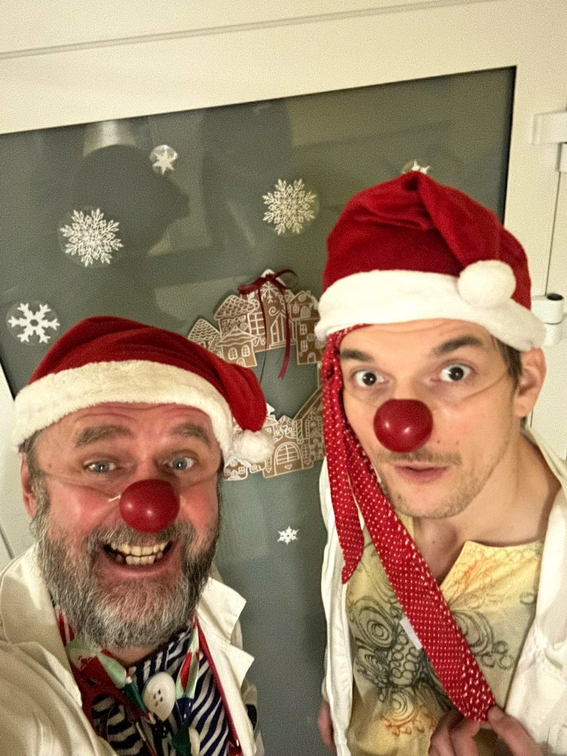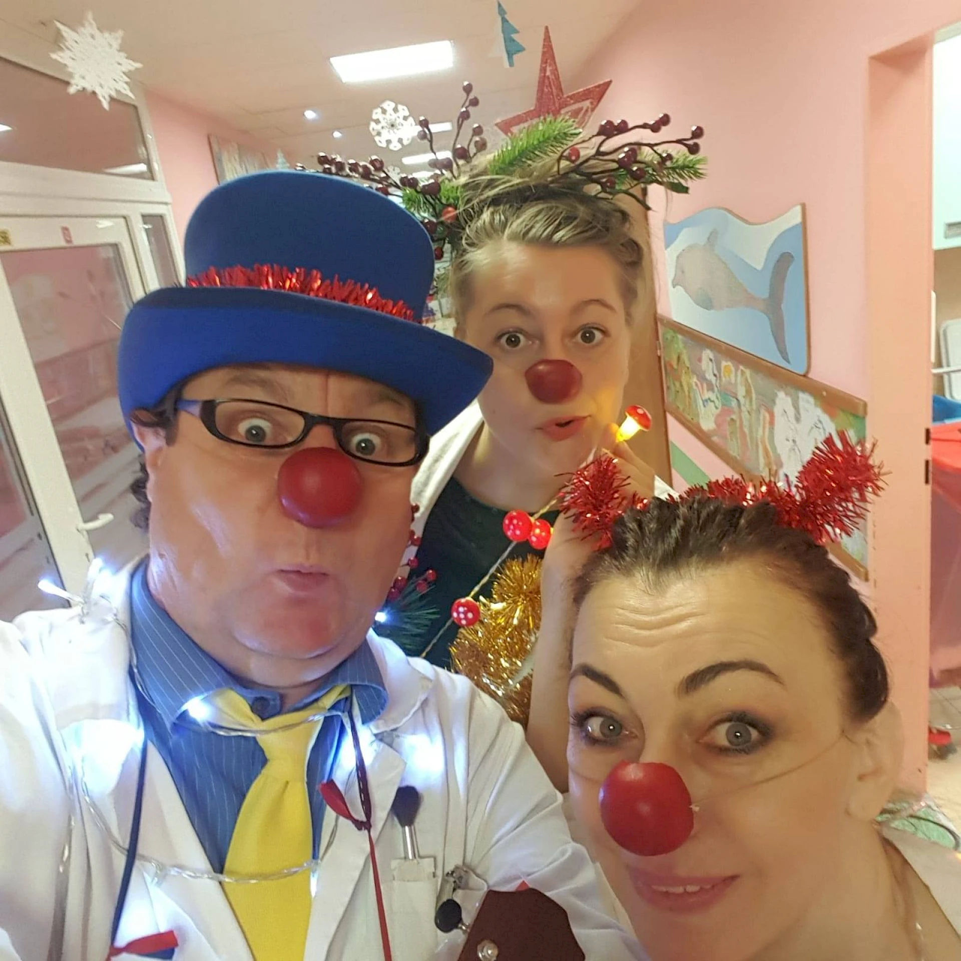 Dvojice zdravotných klaunov navštevujú detských pacientov aj seniorov pravidelne počas celého roka, prinášajú radosť, povzbudenie a menia atmosféru na nemocničných oddeleniach či v seniorských zariadeniach. Cez vianočné sviatky sa neraz stane, že na oddelenie zavíta aj viac klaunov naraz. Vďaka láskavému humoru a klaunskému umeniu dokážu premeniť smútok a clivotu na detský smiech.