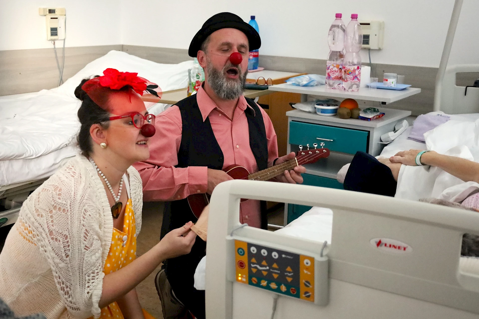 Zdravotných klaunov z občianskeho združenia ČERVENÝ NOS Clowndoctors pozná verejnosť najmä vďaka návštevám detských oddelení. Tento mesiac sa však smiech, spev a ukulele ozývali aj na onkologických oddeleniach pre dospelých. „Klaunské dvojice každoročne v novembri navštevujú onkologické oddelenia obvykle šiestich nemocníc v rôznych regiónoch, aby aj dospelým pacientom dopriali príjemné chvíle naplnené humorom i hudbou,“ hovorí umelecký riaditeľ združenia Pavel Mihaľák.