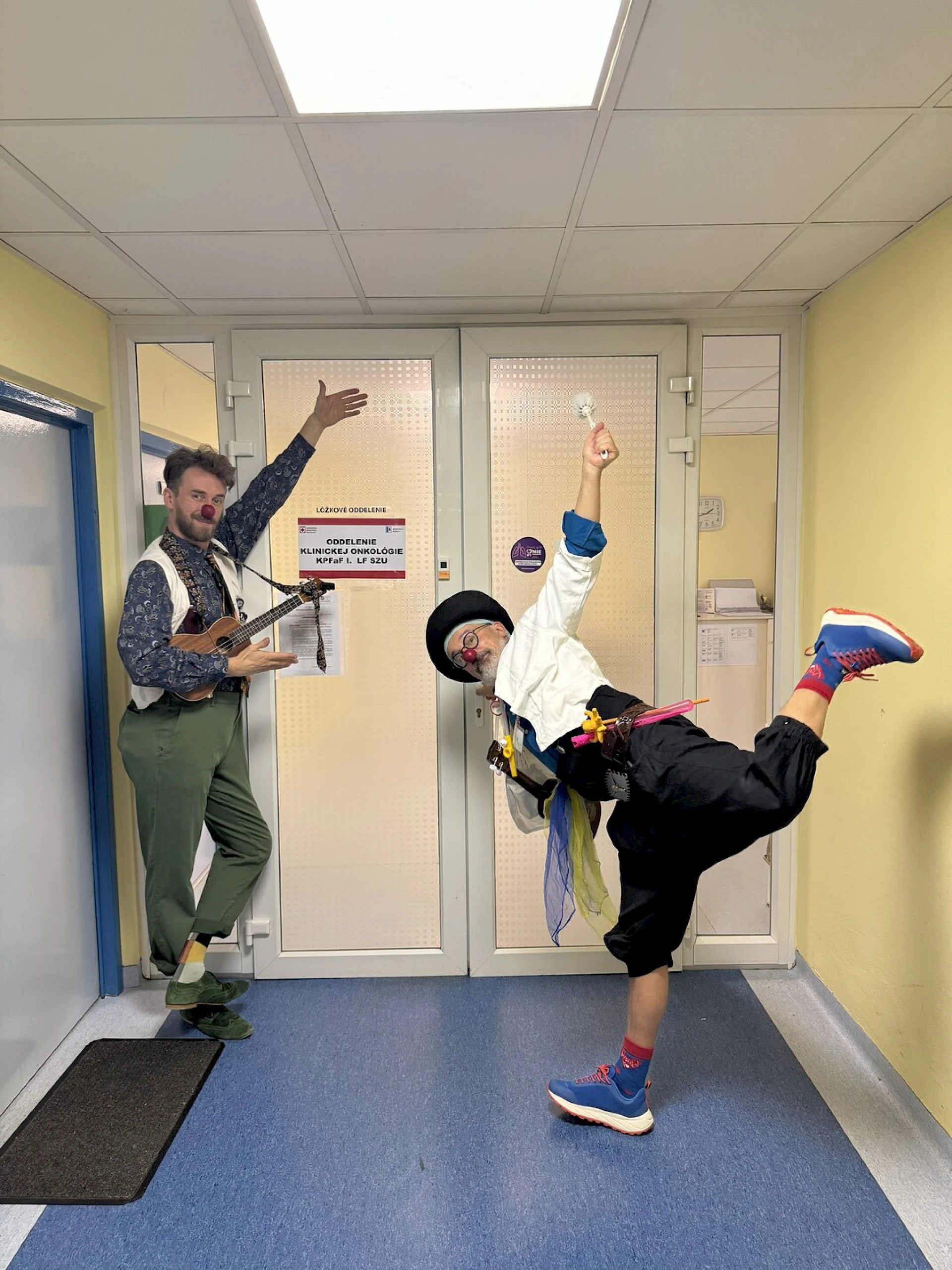 Práve včera 25. novembra 2025 zrealizovali zdravotní klauni Stanislava Kašperová a Boris Srník návštevu Kliniky hematológie a onkohematológie Univerzitnej nemocnice L. Pasteaura v Košiciach, ktorou uzavreli tohtoročnú sériu klauniád pre dospelých onkologických pacientov. „Snažíme sa pacientom priniesť trocha radosti, smiechu a preniesť im myšlienky inam. A funguje to,” prezradil Boris Srník. MUDr. Tomáš Guman, PhD., MBA, prednosta Kliniky hematológie a onkohematológie UNLP vyzdvihol prínos klaunských návštev pre pacientov: „My sa na Červené nosy vždy veľmi tešíme, lebo prinášajú na našu kliniku a medzi pacientov dobrú náladu, čo veľmi pozitívne vplýva na priebeh hospitalizácie aj na tie ďalšie dni, ktoré strávia u nás na lôžku.”