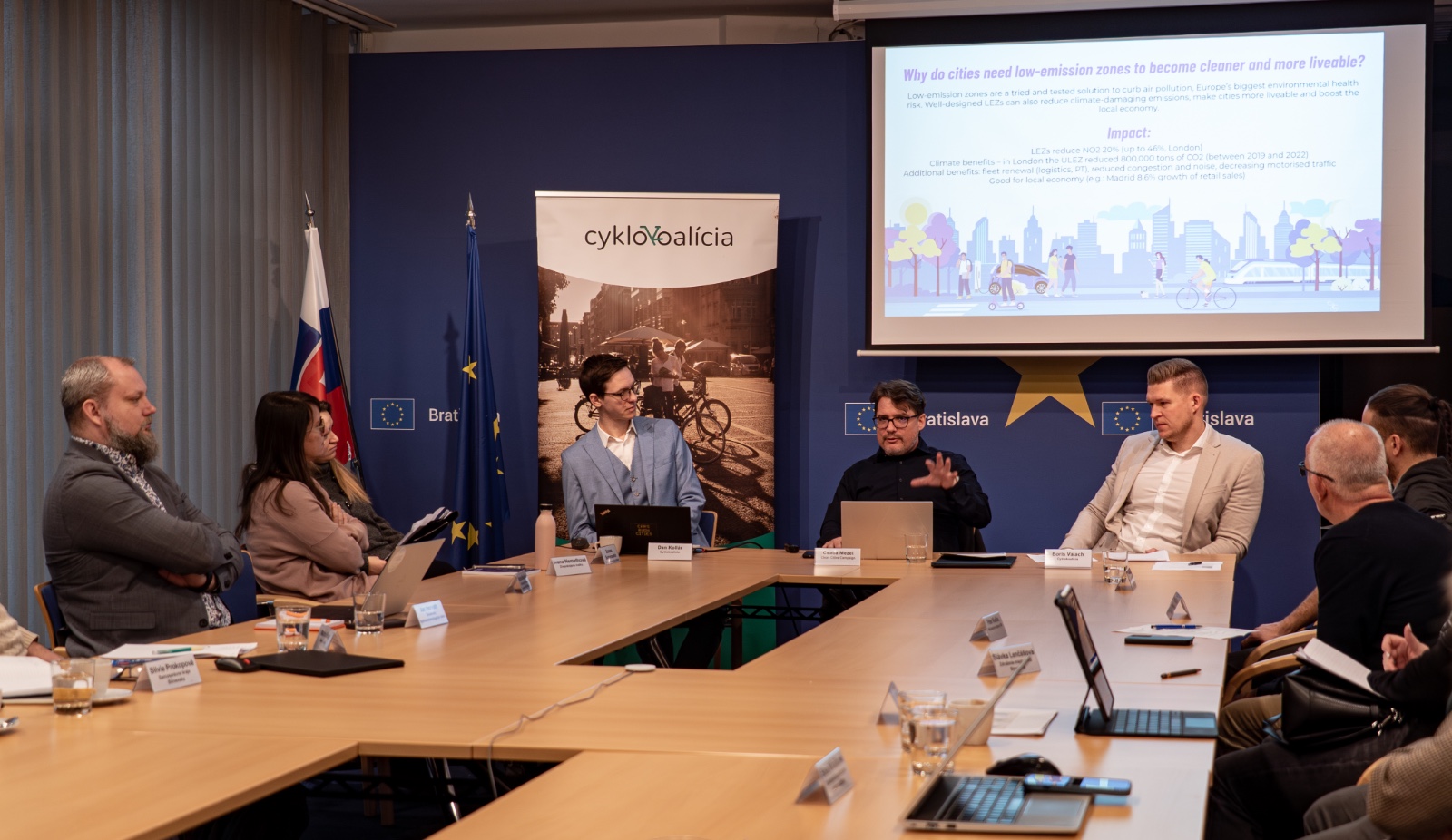 O výzvach v implementácii nízkoemisných zón na Slovensku diskutovali účastníci okrúhleho stola, ktorý zorganizovalo občianske združenie Cyklokoalícia v stredu 28. januára v priestoroch Zastúpenia Európskej komisie na Slovensku.