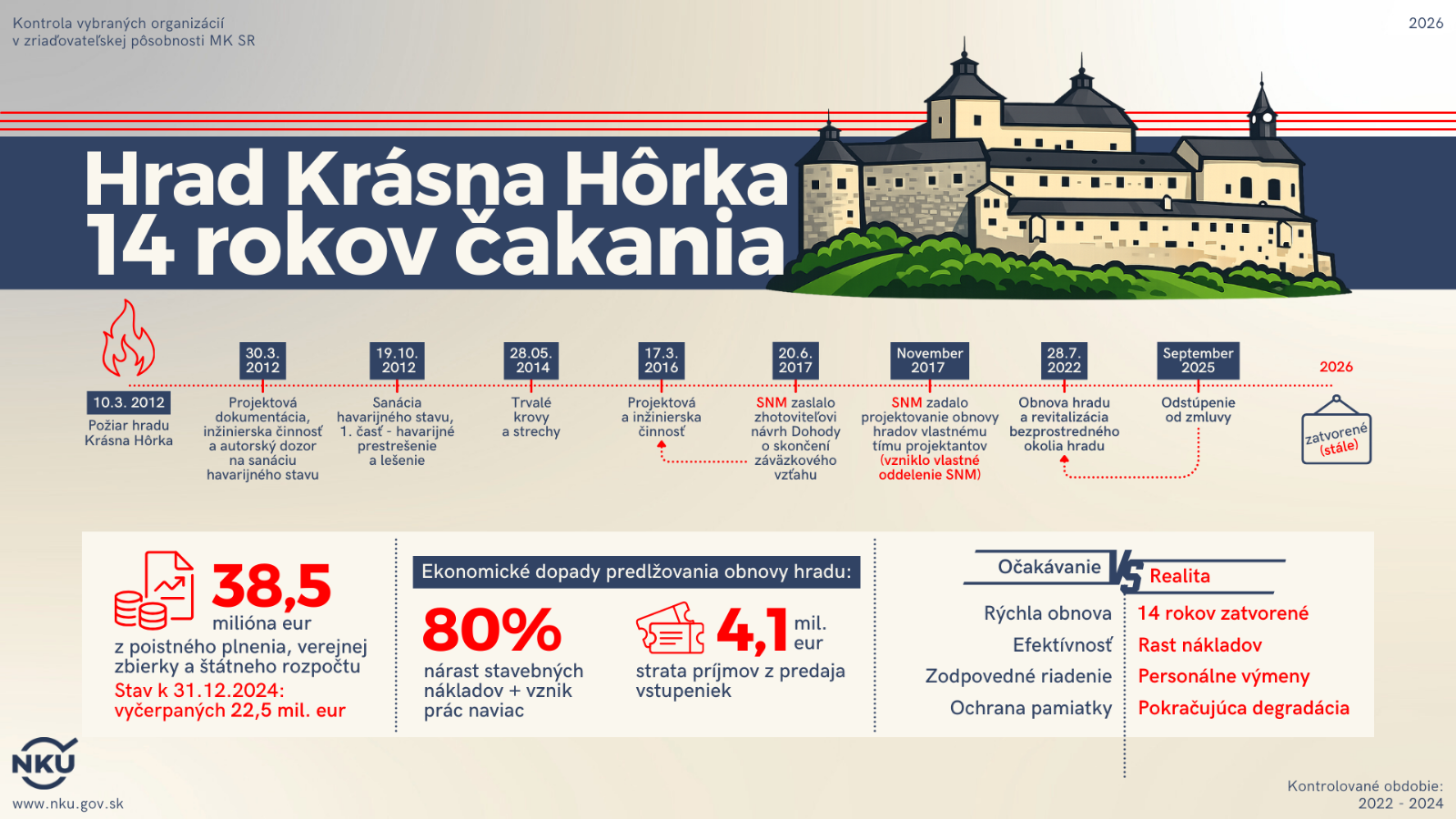 NKÚ: Rezort kultúry zlyhával v riadení veľkých projektov a jeho kontrola nebola účinná
