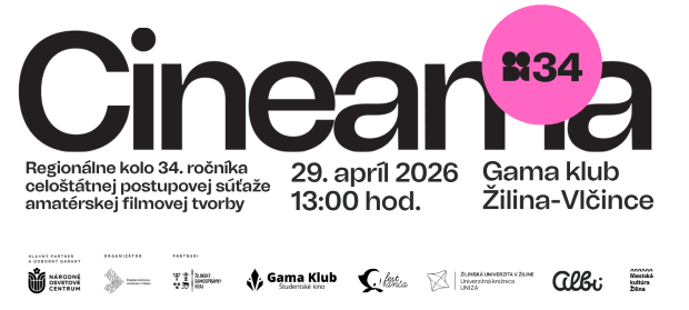 Žilina sa opäť stane miestom stretnutia talentovaných filmárov. V stredu 29. apríla 2026 sa v GAMA klube uskutoční regionálne kolo 34. ročníka celoštátnej postupovej súťaže amatérskej filmovej tvorby Cineama.