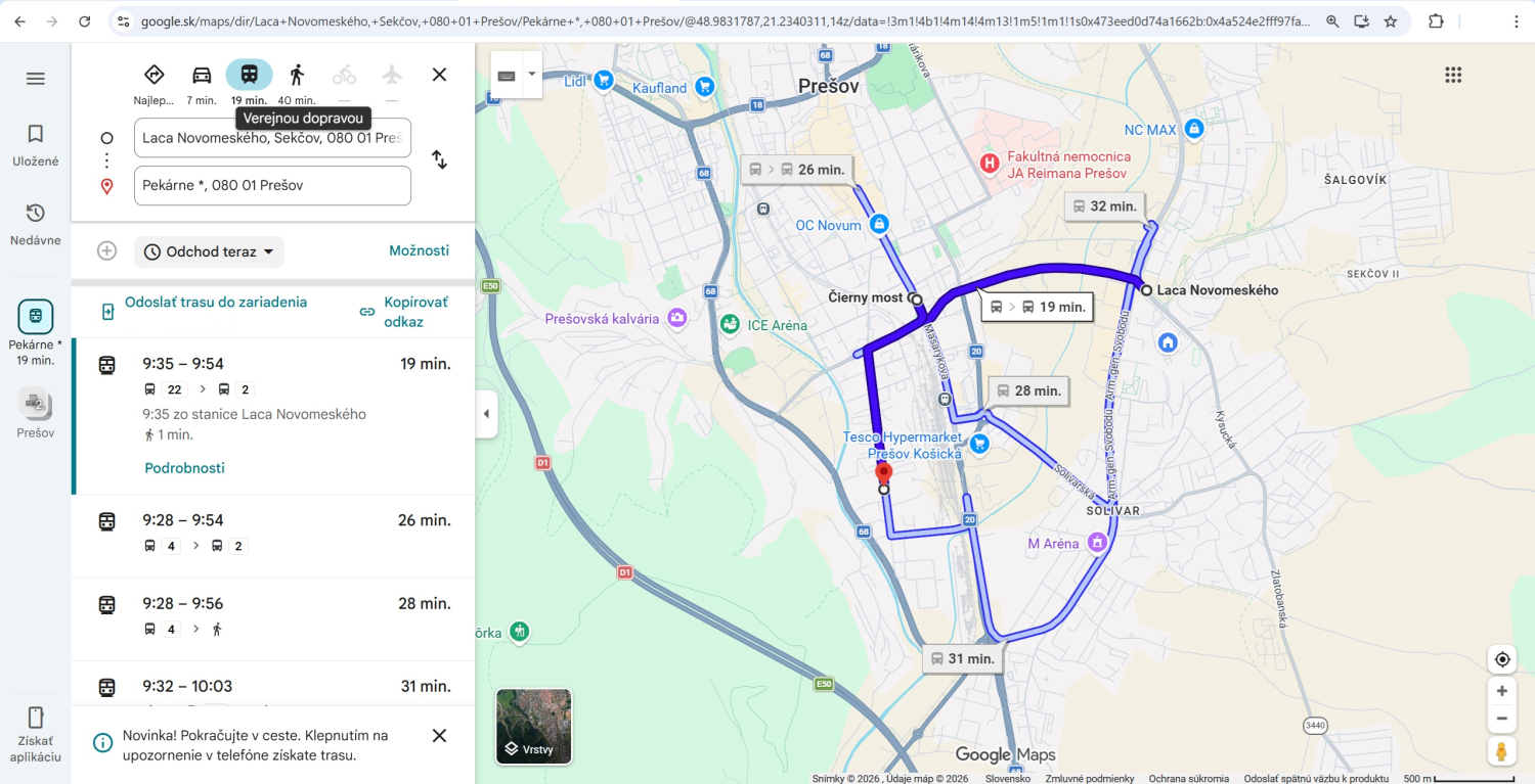 Cestovné poriadky MHD v Prešove sú dostupné už aj na Mapách Google